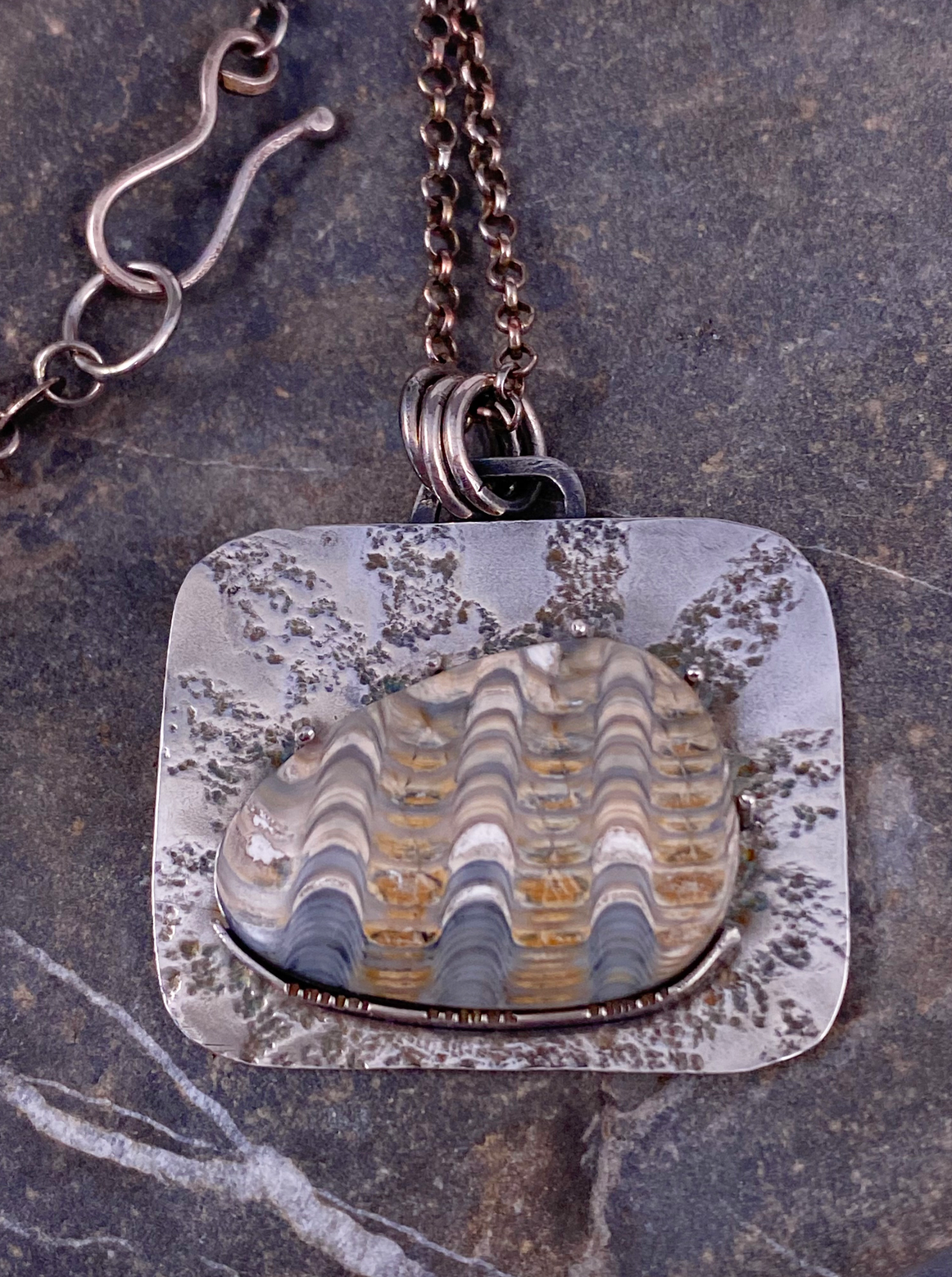 - 19" sterling silver chain with a handcrafted clasp.